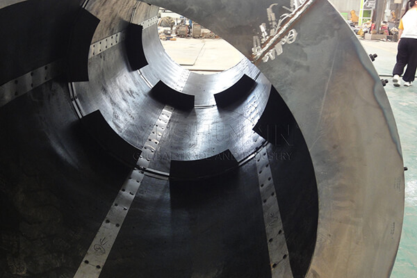 To make granulation equipment withstand the erosion of large scale compound fertilizer processing, one best way is improving the corrosion resistance. On the basis of using Q235B boiler steel to produce the rotary drum pelletizer, we equipment it with a rubber lining. Therefore, this granulation equipment has better erosion resistance and a longer service life.